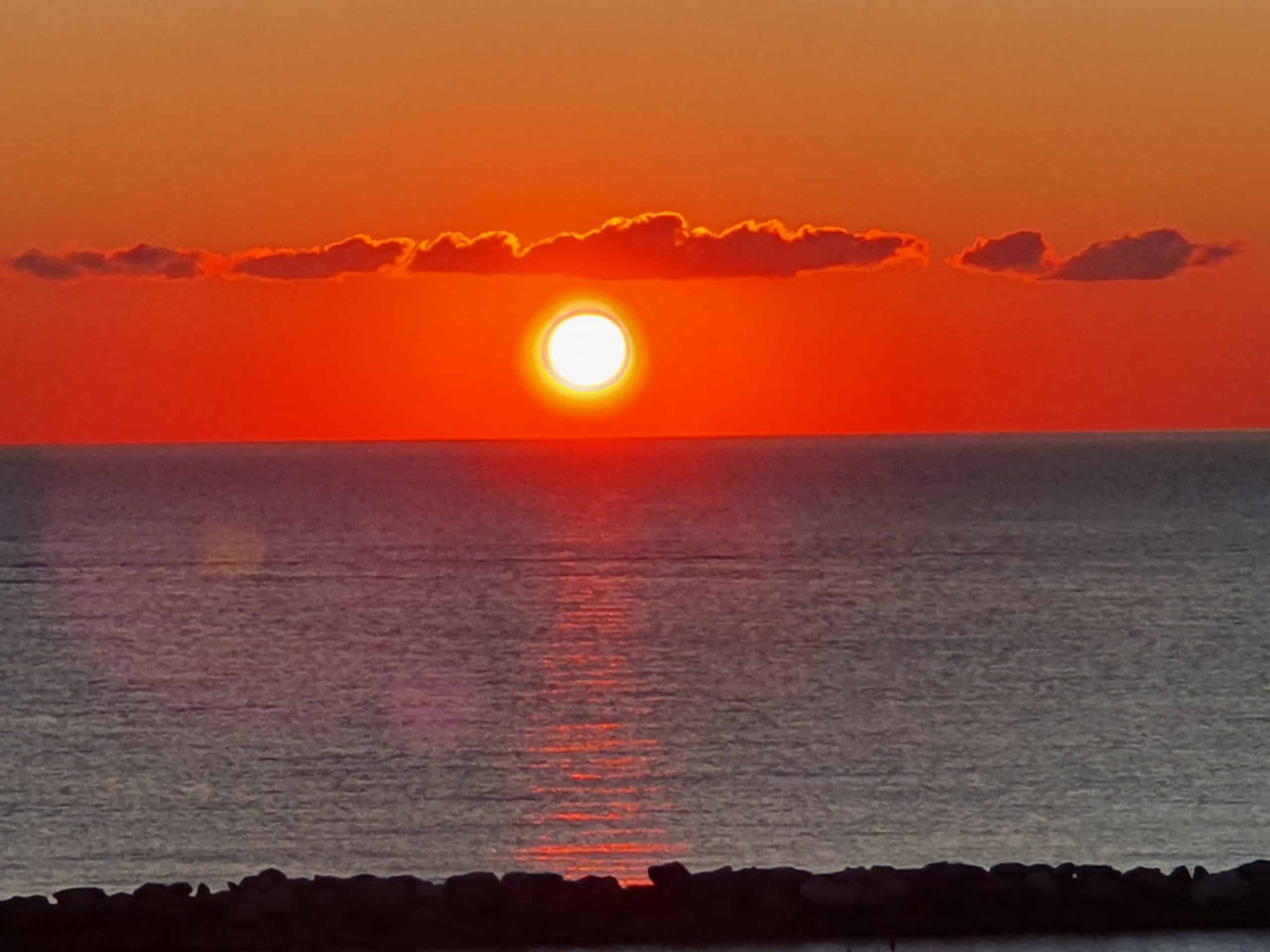 1. Sanftes Meeresrauschen – eine Küstenaufnahme mit ruhigen Wellen bei Sonnenaufgang